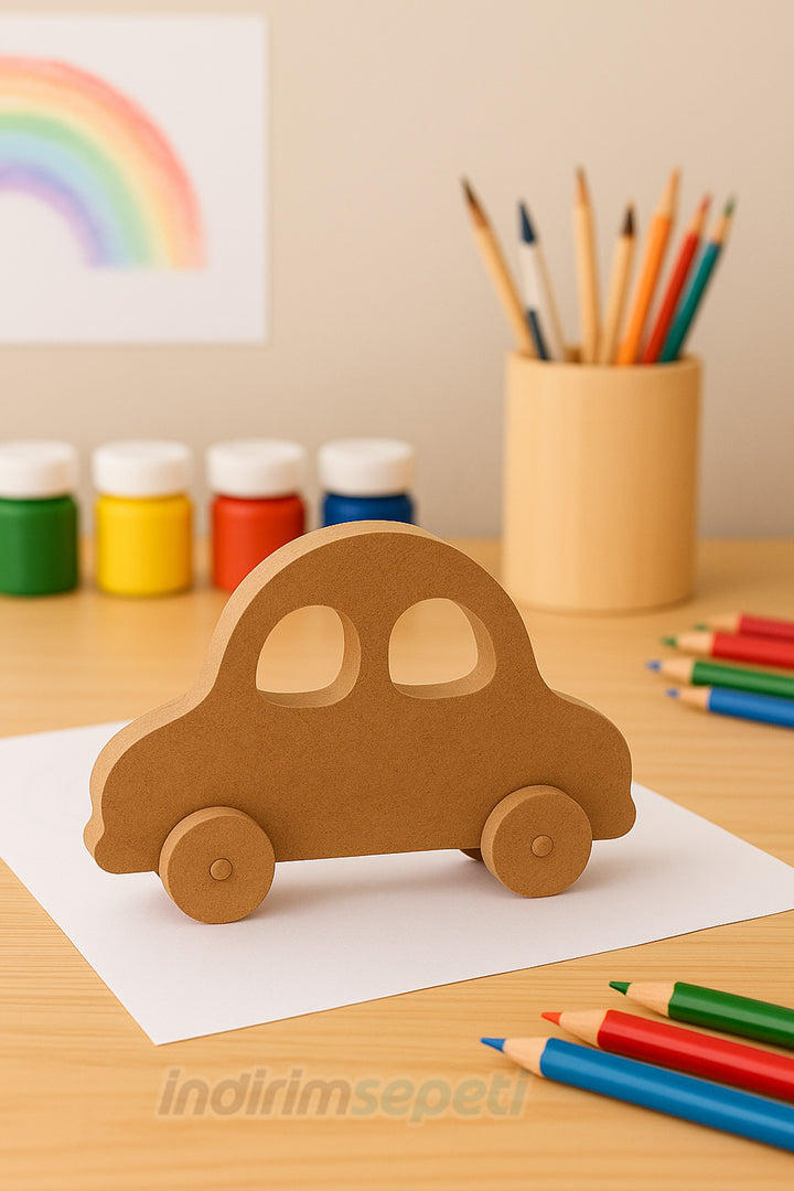 21×14 cm ölçülerindeki ahşap araba figürü, özellikle araçları seven çocuklar için harika bir boyama projesidir. Yüzeyi pürüzsüzdür, tüm boya türleri ile kolayca renklendirilebilir. Anaokulu etkinlikleri, doğum günü aktiviteleri ve evde yaratıcı sanat çalışmaları için ideal bir objedir.