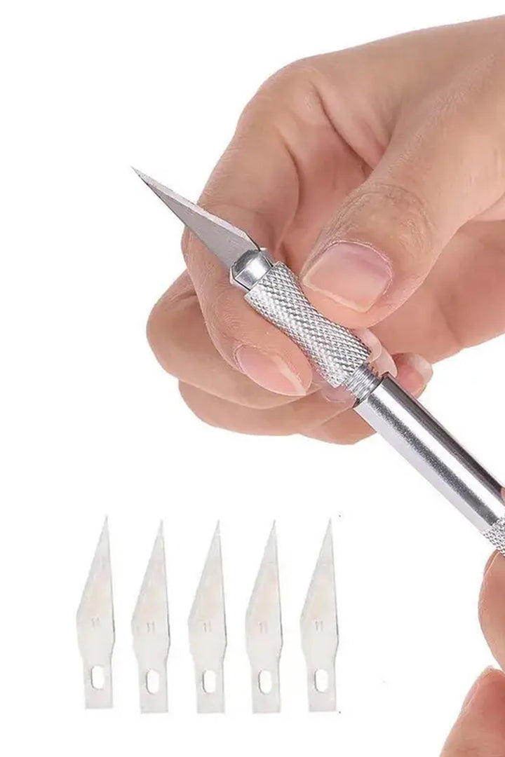 Kretuar Bıçağı 7 Parça Hobi Bıçak Seti – Metal Saplı, Yedek Uçlu, Sanatsal Kesim için İdeal Neşter Takımı