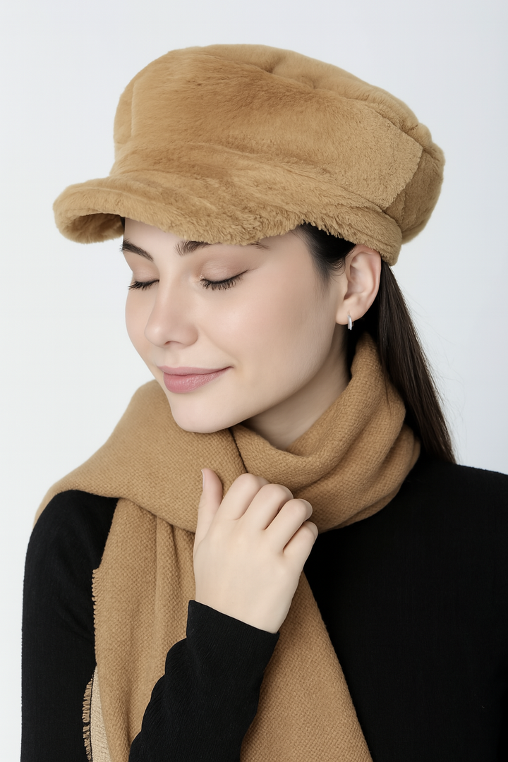Kürk Pelüş Kep Şapka Kaptan Kasket