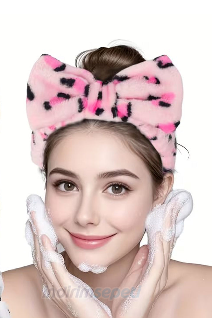 Peluş Leopar Desenli Saç Bandı – Yumuşak Kaymaz Mercan Polar, Makyaj ve Cilt Bakımı İçin 1 Adet Karışık