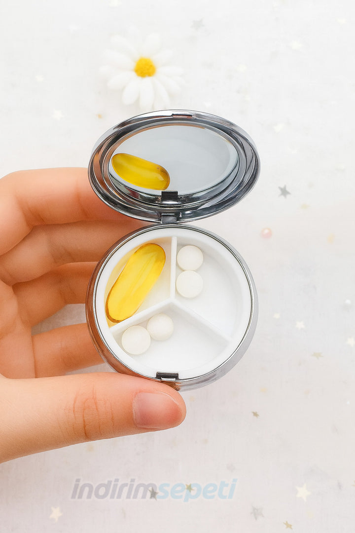 Kapak içi ayna detaylı tasarımı sayesinde ilaçlarınızı kontrol etmek, takı takmak veya makyaj tazelemek artık çok daha kolay. Kompakt yapısı sayesinde çantanızda, cüzdanınızda veya cebinizde rahatça taşınabilir.