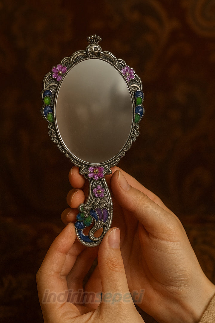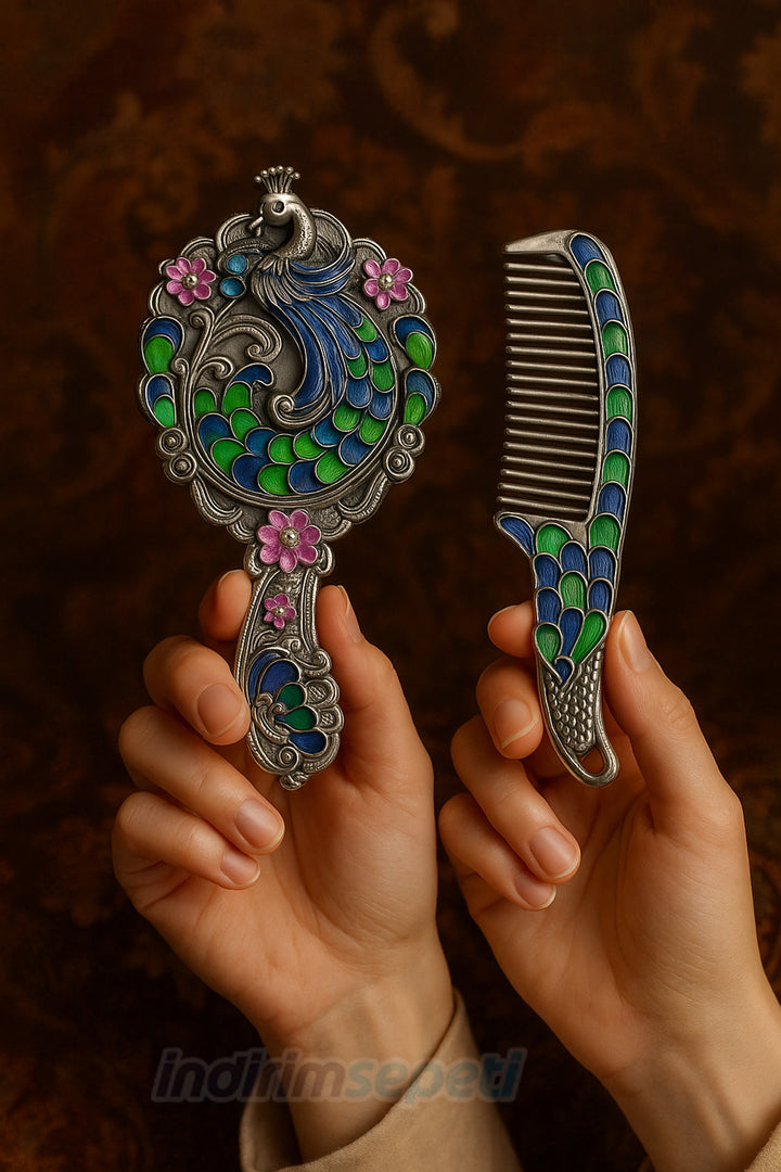 Indirimsepeti Otantik Tavus Kuşu Ayna Tarak Seti – El İşçiliği Metal Gövde Kutulu Şık Hediye Seti