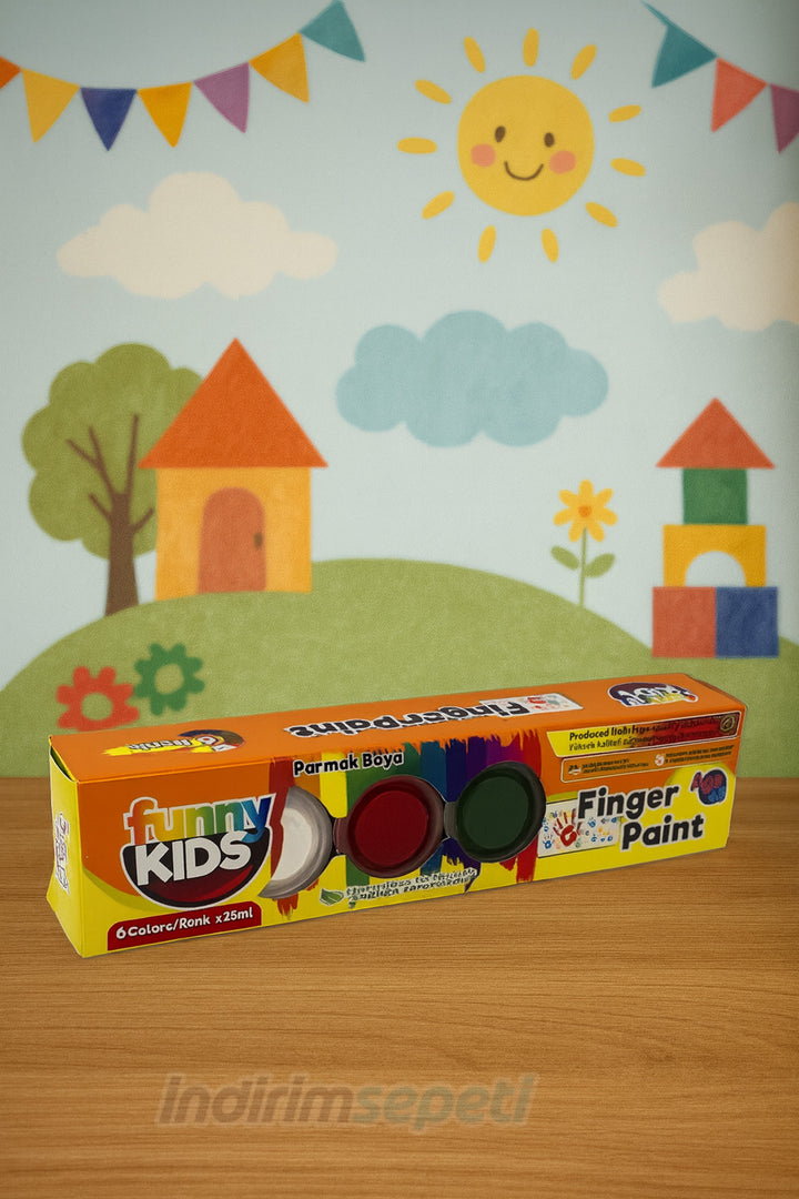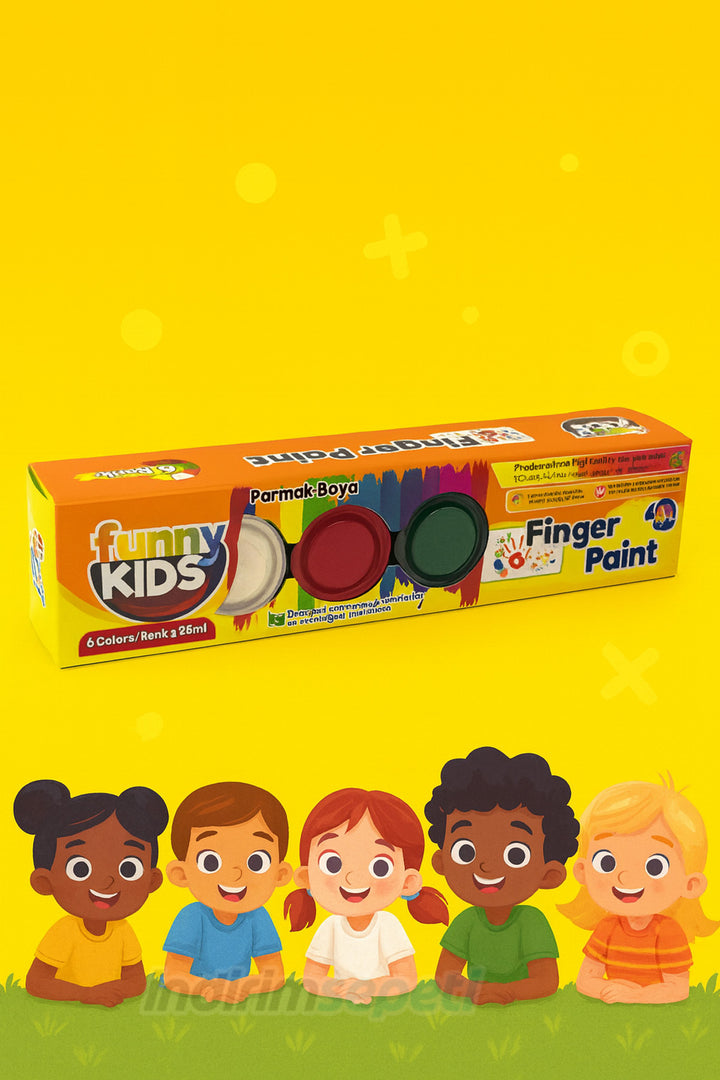 Çocukların hayal gücünü ve el becerisini geliştiren en eğlenceli aktivitelerden biri parmak boyama! Funny Kids Parmak Boyası seti, 6 canlı renk ve 25 ml’lik pratik kaplarıyla minikler için hem güvenli hem de çok keyifli bir sanat deneyimi sunar.