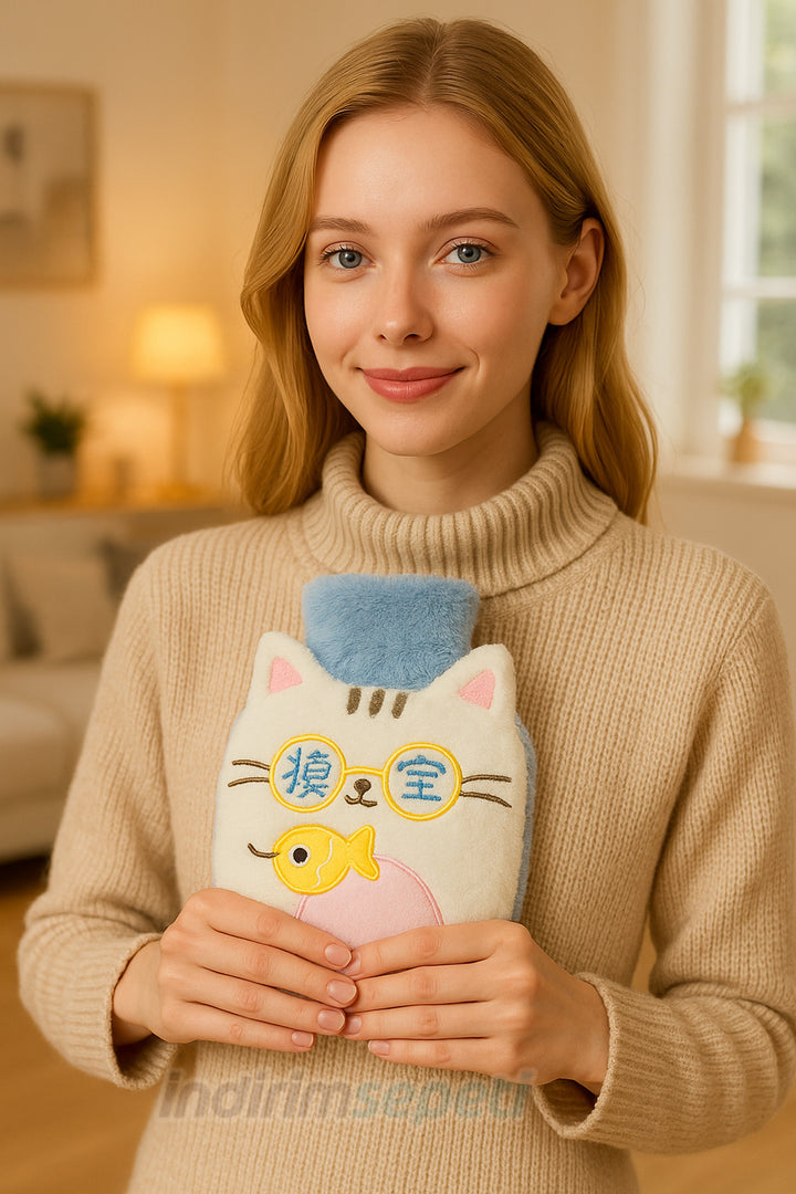 Trend milla Sıcak Su Torbası Kitty Figürlü Yumuşak Peluş Eldivenli 500 ml Kış Sıcaklığı 1 Adet