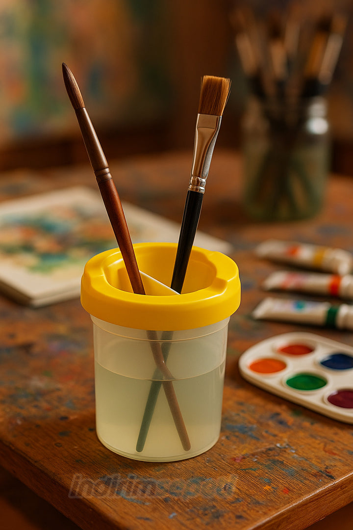 Fırça temizlemeyi kolaylaştıran bölmeli kapak kısmı sayesinde suda karışma, sıçrama veya taşma olmaz.