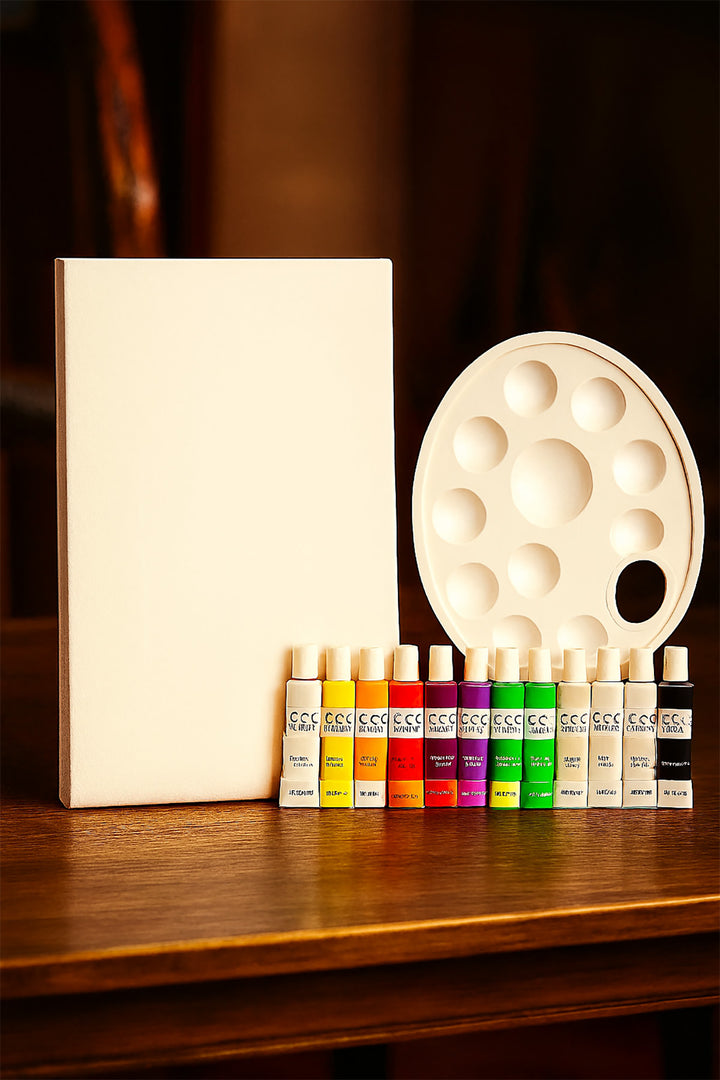 25x35 Tuval + 12’li Guaj Boya Seti, hem yeni başlayanlar hem de resimle ilgilenen çocuklar için eksiksiz bir başlangıç ve hobi boyama setidir. Set içerisinde 12 canlı renk guaj boya, yüksek kaliteli 25x35 tuval, ergonomik boya paleti bulunmaktadır.